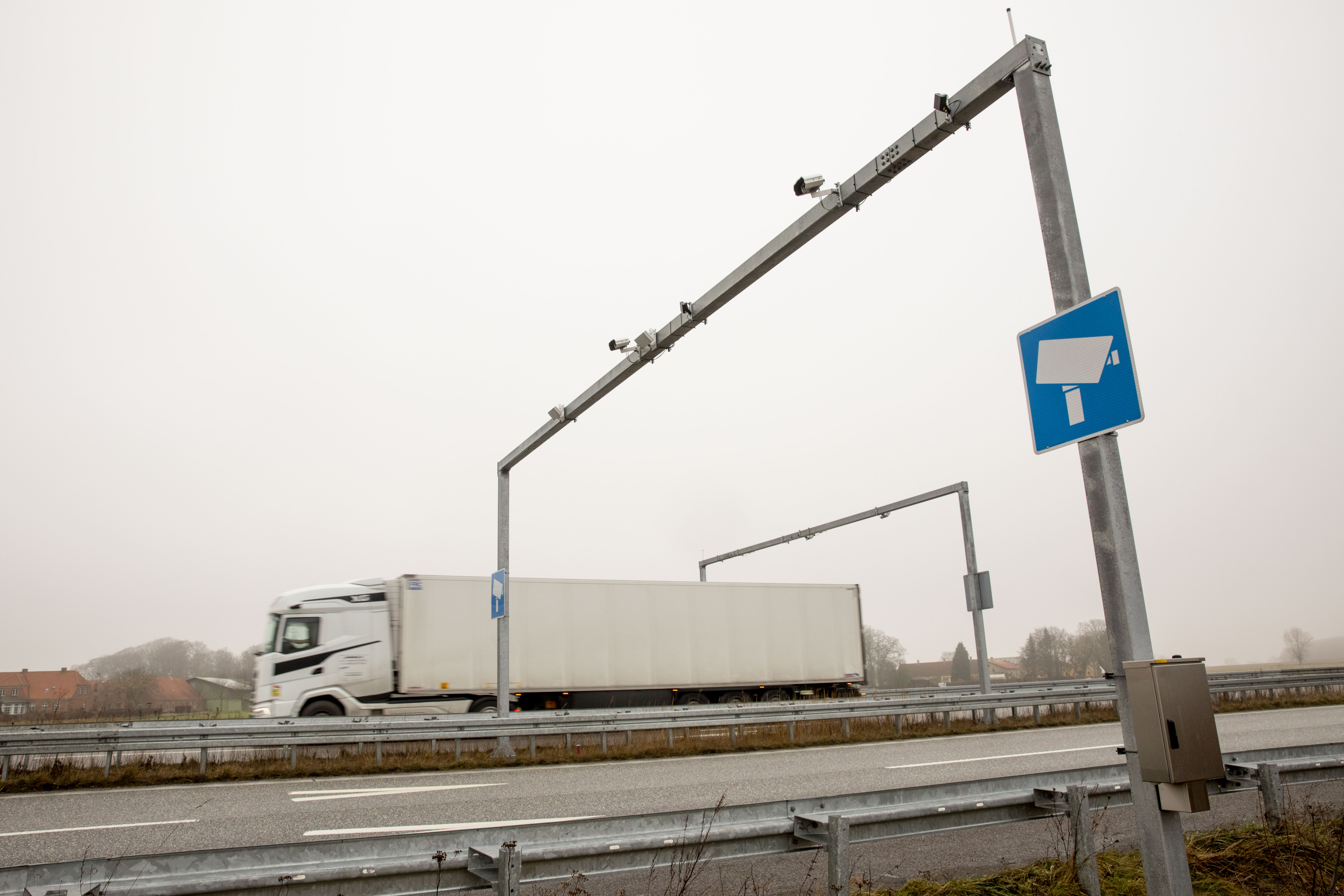 Both Danish and foreign trucks automatically have their number plates read. The number plate is compared with payment data to ensure that the truck has paid for the route via satellite-based vehicle equipment (box/app) or a digital KmToll ticket.